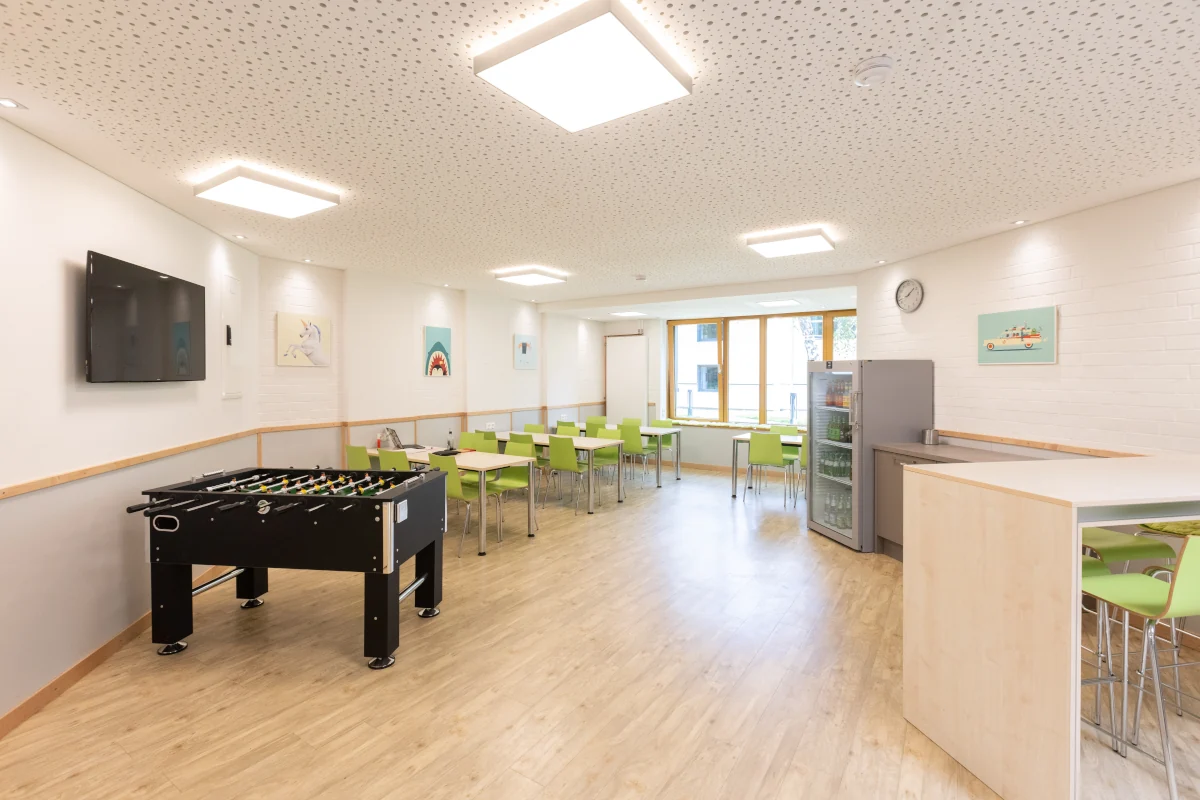- Im Gruppenraum mit ca. 30 qm ist Platz für 18 Personen.